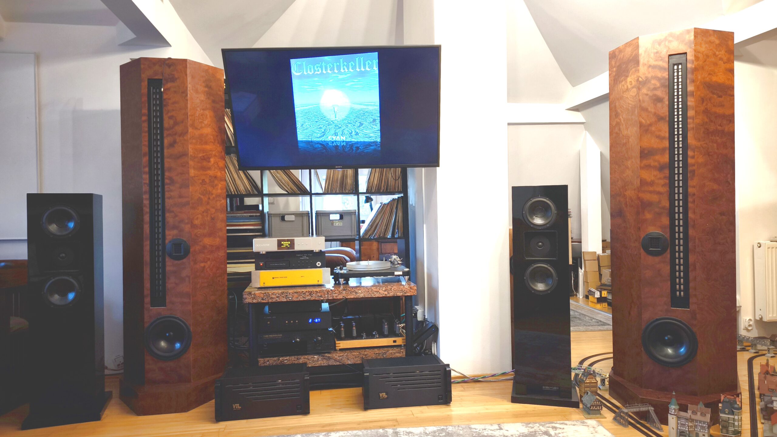Kolumny wstęgowe czwartej generacji 89-90db do napędzania, których używam monobloków VTL MB 450 Signature (aż 450w mocy z 16 lamp) lub japońskiego Sanei Lab UV-211 (zamiennie), przedwzmacniacz LITE LS26 (upgradowany – steruje monoblokami VTL), przedwzmacniacz Kondo KSL M7 clone (steruje końcówką Sanei Lab), DAC Metrum PAVANE Level 3, interfejs USB/I2S Singxer SU-6, BD OPPO BDP-103EU RF DVD/BD transport, cichy komputer HP Z200 7i + Windows 10 + odtwarzacz programowy J. River Media 22, Phonostage Audio Note L3 Phono kit + KONDO CFz Step Up Transformer, gramofon VPI Scout + wkładka Benz Micro Glider L2.